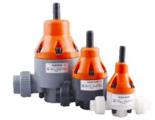 Válvula de alivio y contrapresión para protección de bombas y control de presión en sistemas de dosificación química industriales.